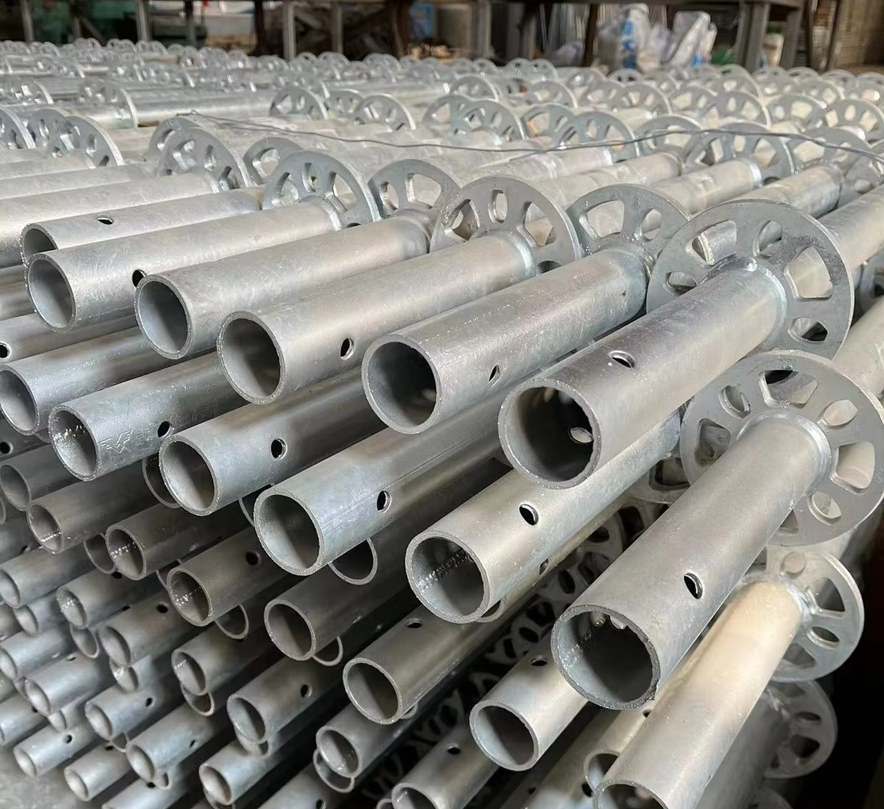 - Sản phẩm nhập khẩu đạt chuẩn quốc tế: Giàn giáo Ringlock được nhập khẩu từ các nhà sản xuất hàng đầu, được mạ kẽm nhúng nóng sâu cả trong lẫn ngoài để chống gỉ sét và tăng sự bền bỉ, khả năng chịu tải trọng lớn.
